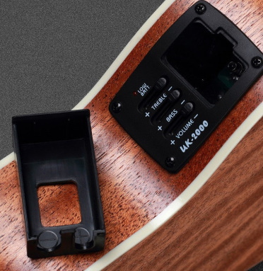 ▲プリアンプ搭載! アンダーサドル式ピエゾ 高低音とボリュームも手元操作出来ます。