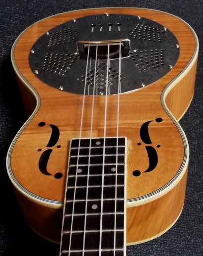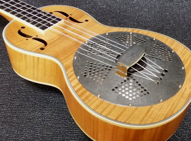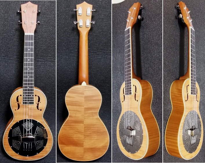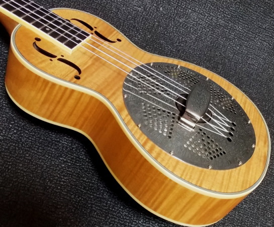 ウクレレでは珍しいリゾネーターです。初心・初級者や1本目のウクレレをお探しの方には、お薦め出来ません。 |