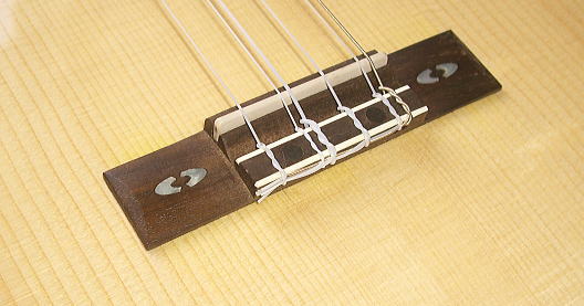 ▲4コースに6本の弦 低い方からG・High C・C・E・A・Low A