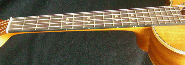 ▲サウンドホールを飾るロゼッタ ブリッジにもMOPのインレイ