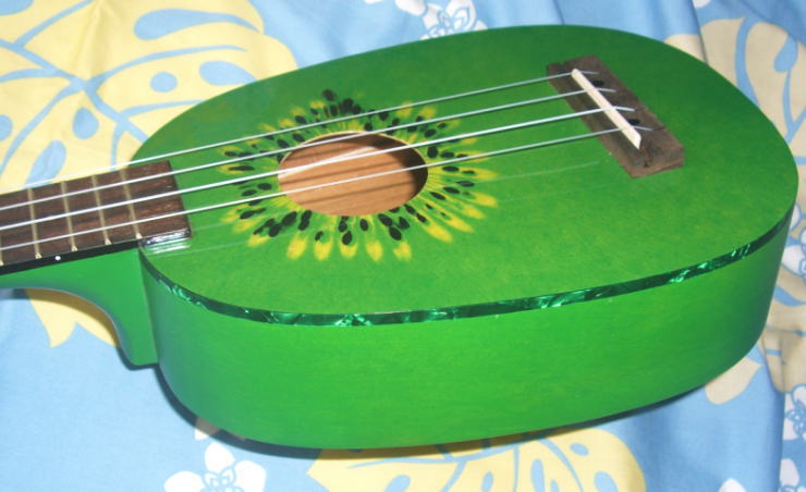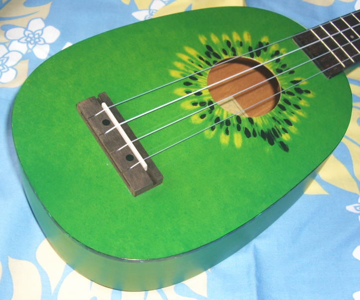 かわいいシルクスクリーンによるキウイをデザインしたウクレレです。一見おもちゃのようですが、そのあたりの安価なウクレレとは違います。しっかりした楽器としてのクオリティがあります。見た目が可愛くて楽器としてのウクレレを探している方にお薦めです。
