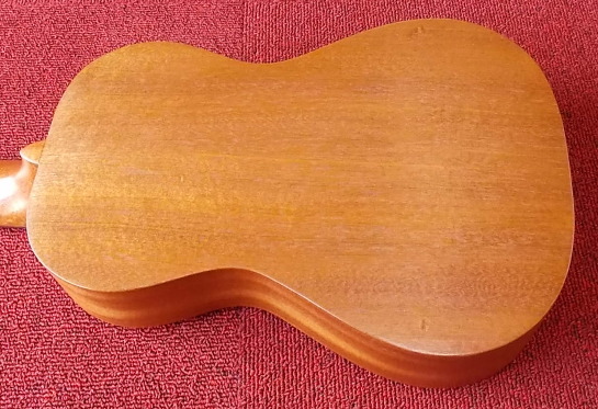 ▲ボディーはマホガニー総単板です。木目の目立たないタイプです。