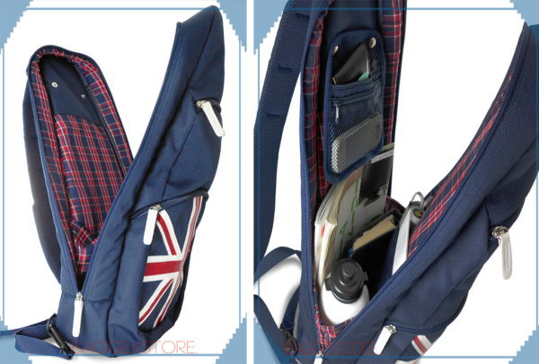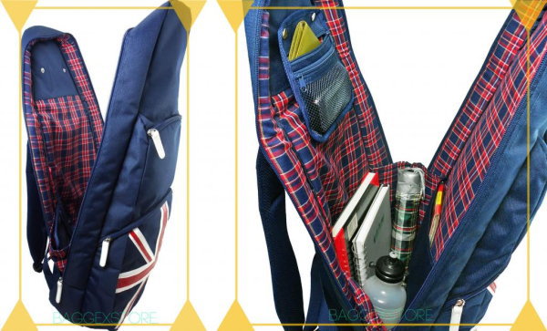小物も入るのでとても便利ですよ。外側のポケットにはユニオンジャックがデザインされ、
