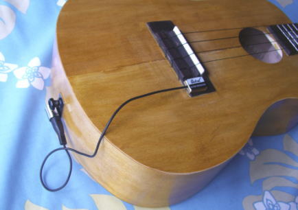 ▲当店でウクレレ購入の際、外付けピックアップをご注文された場合、
