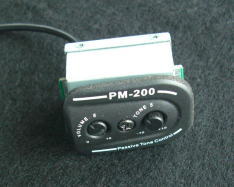 3.5Vのボタン電池を使うプリアンプです。高・低音とボリューム調整が可能です。