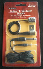 最近では、シャドーのこんなものもあります。左に突き出た髭のようなものをサドルのしたに挟みます。センサーが上下の音を拾うので、弦とボディの両方の音を拾うそうです。つまりコンタクトマイクとアンダーサドルの両方を兼ね備えていると言うのが売りのようです。